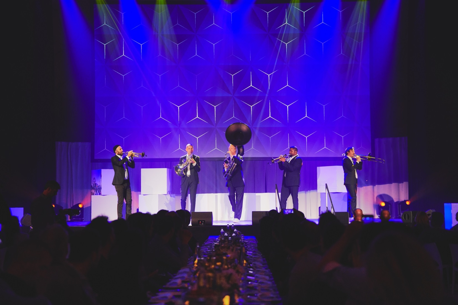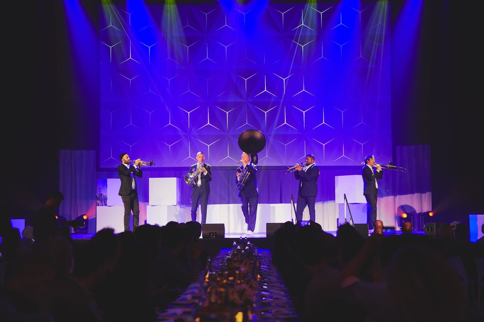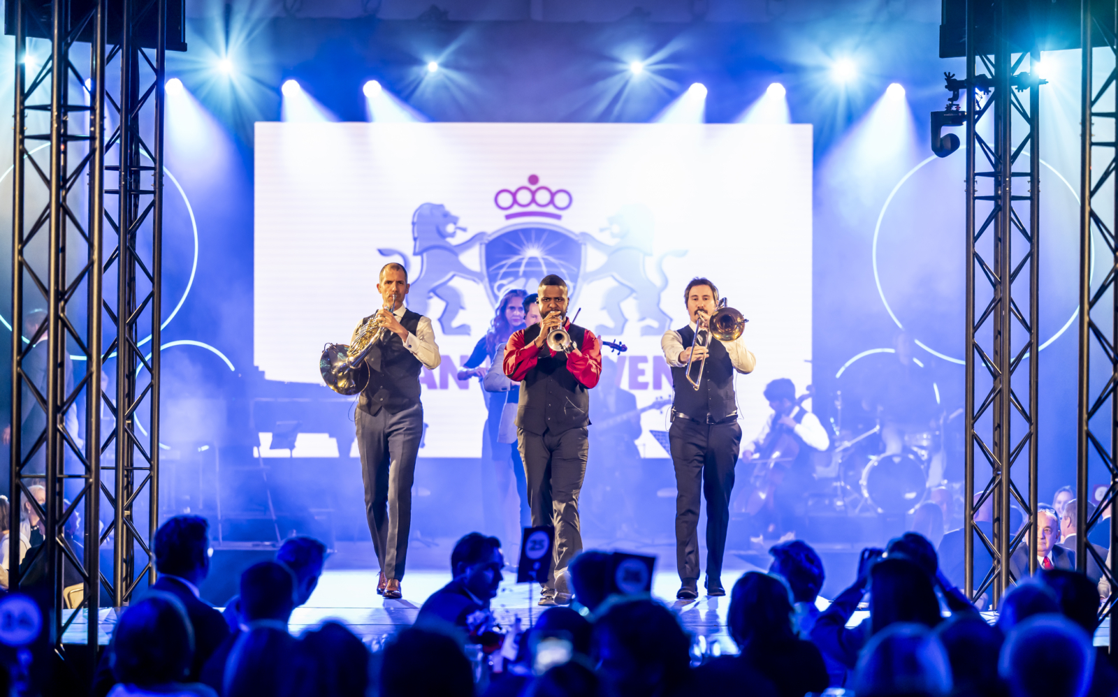 De brassband heeft een krachtige plug’n play openingsact, maar verzorgt daarnaast ook prachtige miniconcerten tijdens chique diners, of ze begeleiden sprekers, muzikanten of dichters. Niets is te gek.