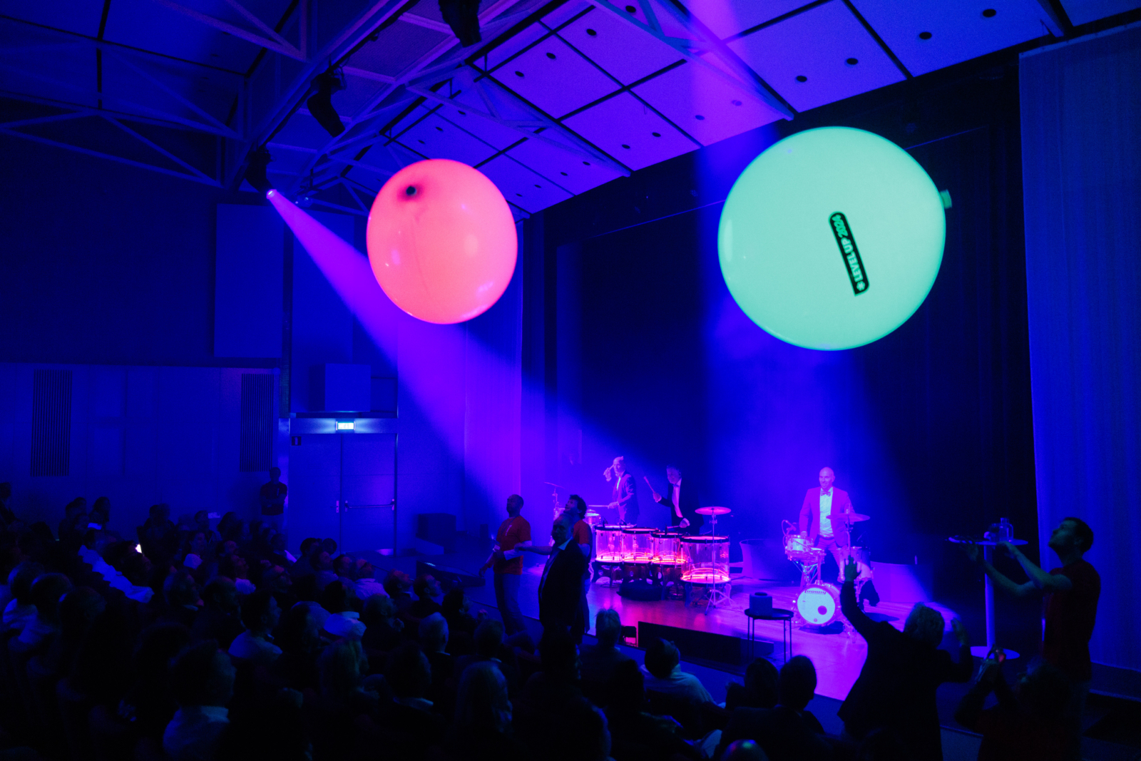 De kern van deze spectaculaire openingsact bestaat uit drie enorme LED ballen die dienen als slagwerkinstrument en bij elke ‘hit’ oplichten. Na een behendige strakke percussieshow op vier LED drums stappen de percussionisten achter de LED-ballen. In een mum van tijd werken de drie drummers vanuit een verrassende LED-show naar een allesomvattend hoogtepunt toe die zijn weerga niet kent. Als klap op de vuurpijl worden de LED-ballen de zaal in gegooid of ‘ontploffen’ ze.