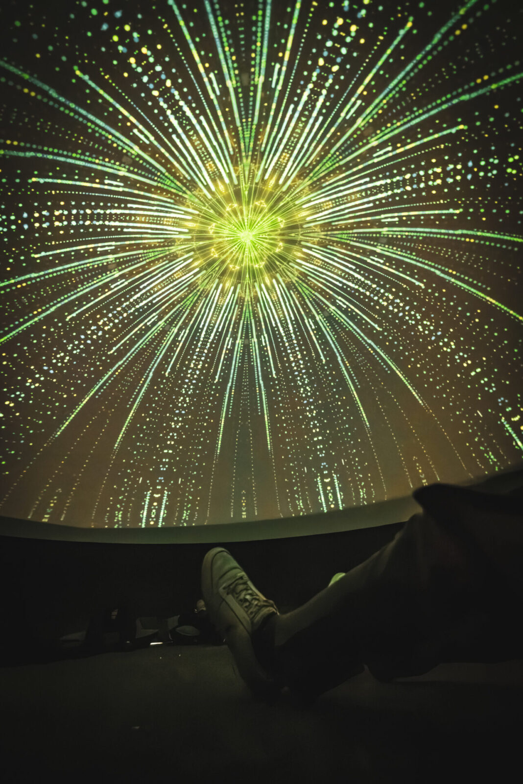 Zodra je de ReCharge-dome binnenstapt, laat je de buitenwereld achter en word je ondergedompeld in een meeslepende audiovisuele reis. De voorstelling verweven in muziek, licht en projectie geven je een zintuiglijke ervaring die voelt als een droom in beweging. Geluidsgolven pulseren door je lijf terwijl organische visuals zich om je heen ontvouwen als ademende landschappen.