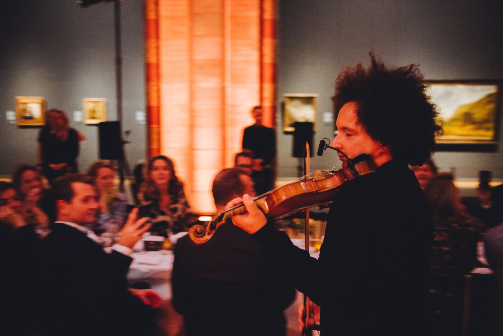Voorafgaand aan de tafelwissel verzorgden de Rembrandt danseressen een intermezzo onder begeleiding van het trio. Tot slot voerden violist Sietse en een breakdancer een indrukwekkende cross-over dialoog die de avond stijlvol tot een einde bracht.