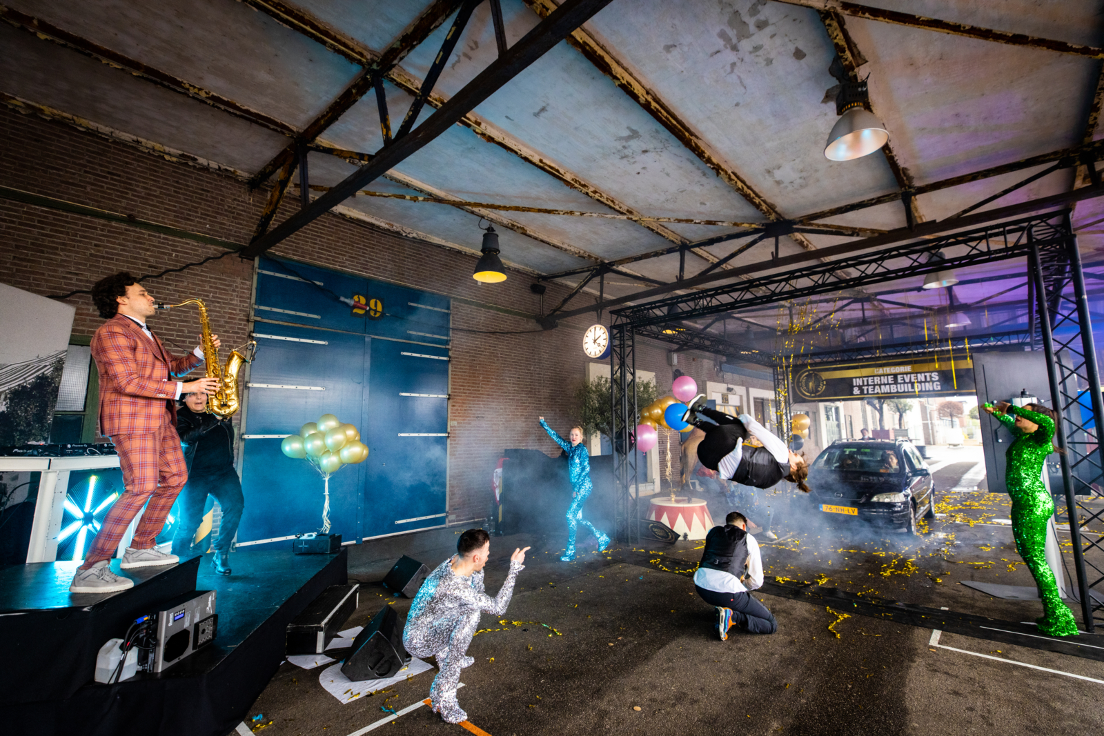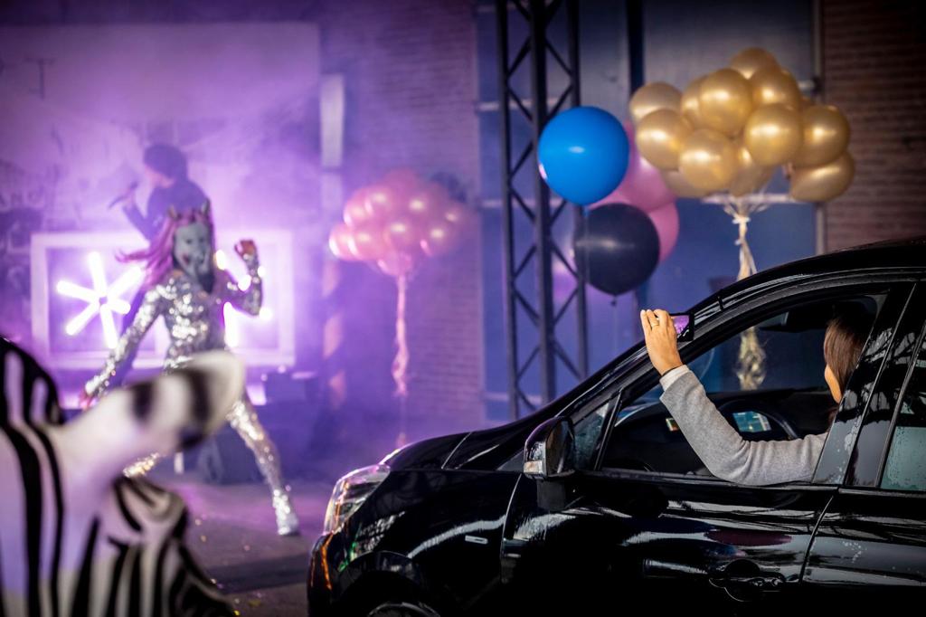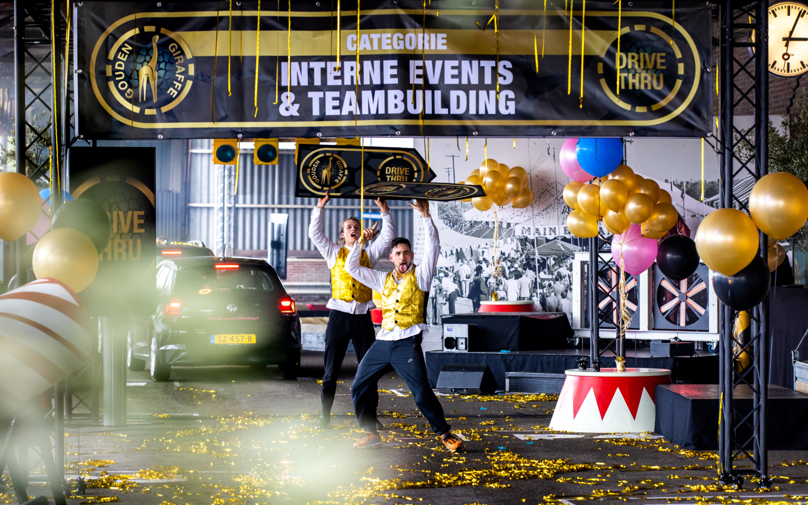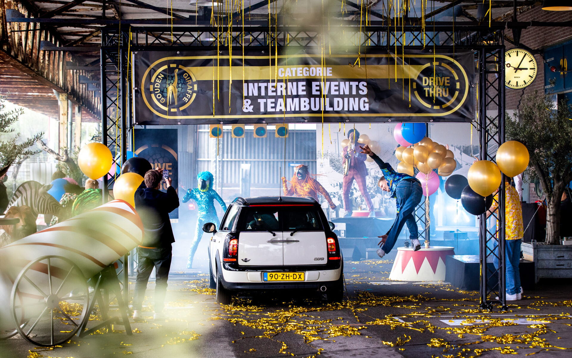 In opdracht van Xsaga en EventBranche hosten wij op 30 april 2021 een Drive-Thru station bij de bekendmaking van de nominaties van de Gouden Giraffe Awards. En dat was madness! Nadat ‘live’ een lange winterslaap nam, zetten we onverwachts meer dan 60 liveshows neer. In een guerrilla-achtige performance bestormden urban dansers, livemuzikanten en opmerkelijke discodieren, meer dan 60 auto’s in 3 uur tijd en met een non-stop energylevel van 200%! Na elke show werden de zes genomineerde finalisten in de categorie interne events en teambuilding bekend gemaakt.